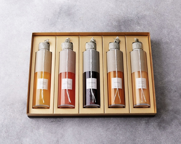東京・大手町に佇むラグジュアリーホテル「アマン東京」の全5種オリジナルジュースセット。