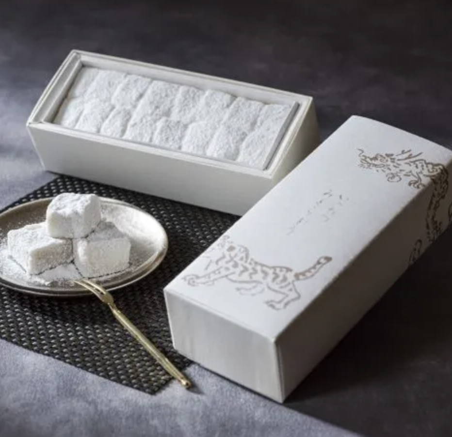 ミシュラン三つ星「神楽坂 石かわ」店主・石川氏と「虎白」店主・小泉氏が試行錯誤を重ねて創り上げた、いったつみとらどうの椰子の白わらび餅。