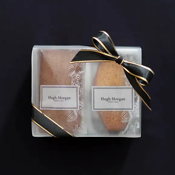 日本初スペシャルティ・バニラ専門店、Hugh Morgan(ヒューモルガン)。フルーティーな香りが際立つサクサクとした食感のバニラフィナンシェと、バニラの甘く華やかな香りが広がる、卵黄をたっぷり贅沢に使ったマドレーヌのアソートセット。