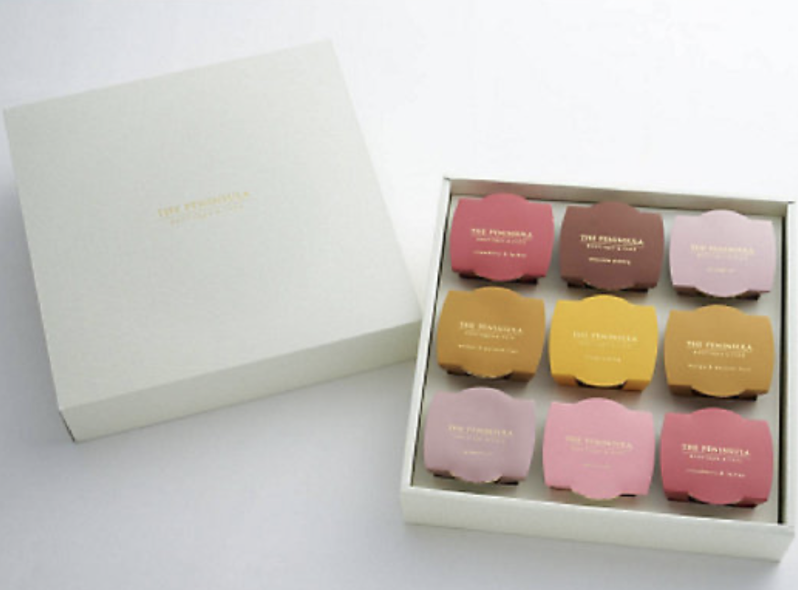 ホテル「ザ・ペニンシュラ東京」のペストリーチームが考案した人気のマンゴープリンをはじめ、大人な味わいのチョコレートプリン、甘さ控えめの杏仁豆腐に、マンゴー&パッションフルーツ、ストロベリー&ライチ、グレープフルーツのさわやかなゼリーを加えた6種のギフトセット。
