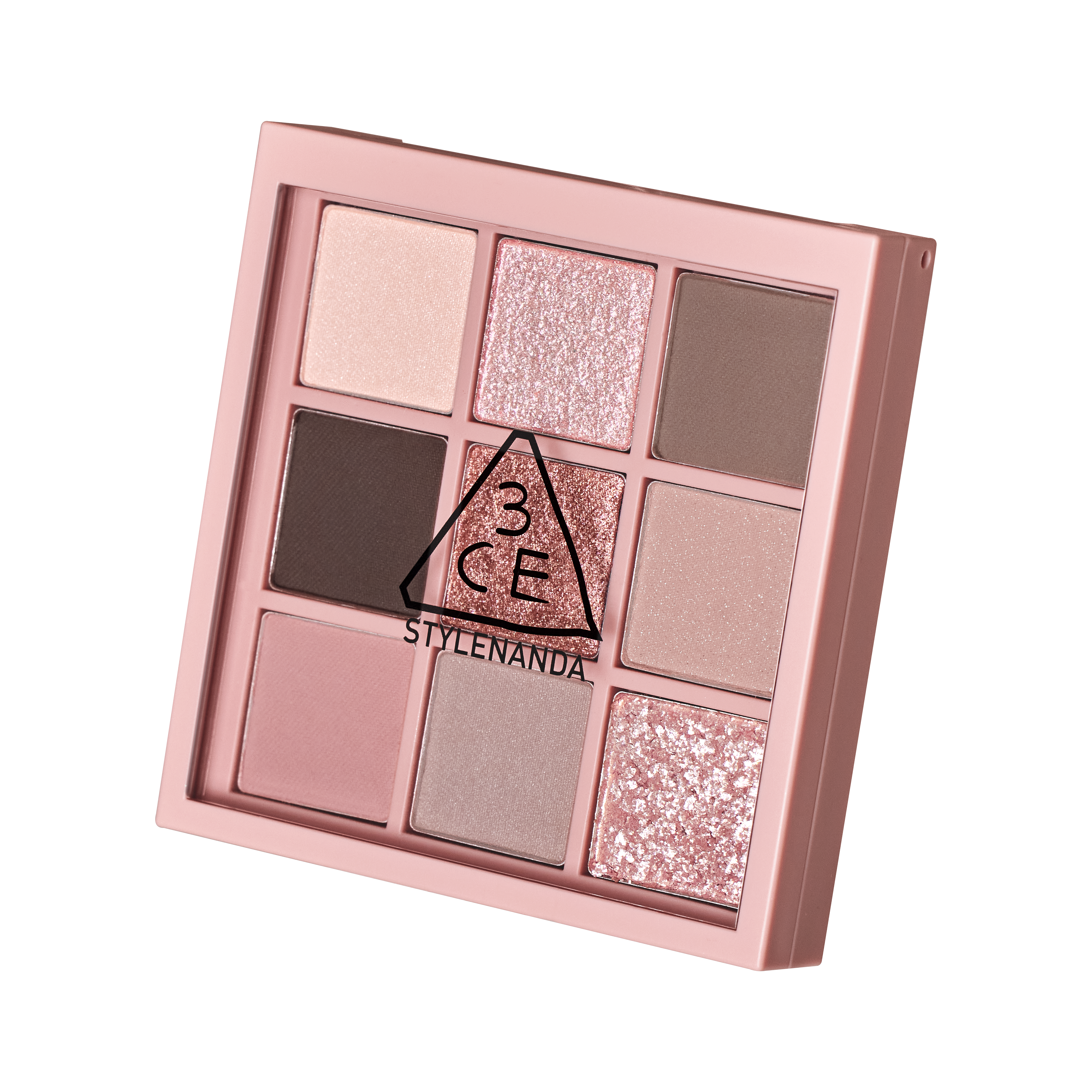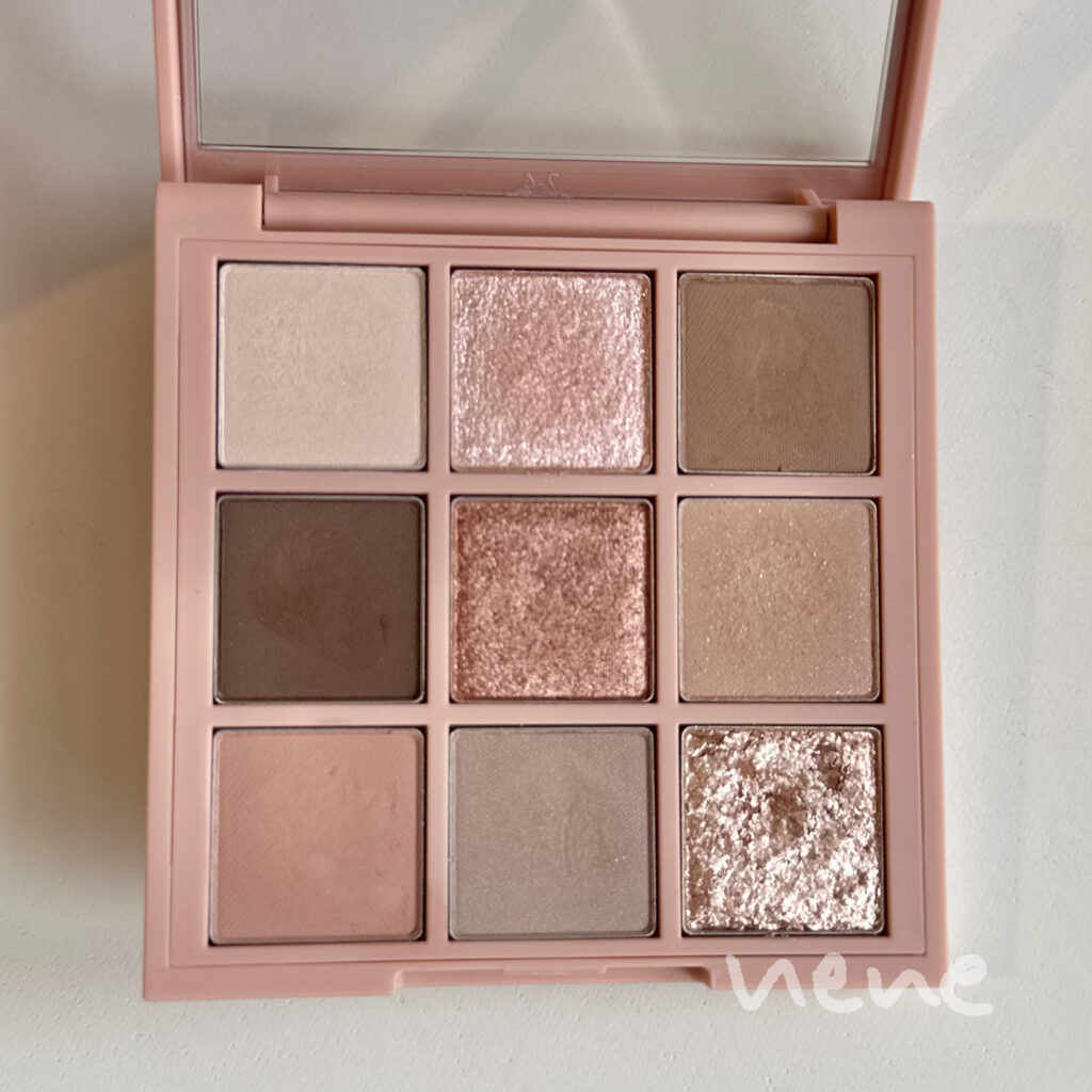 くすみピンクとクリスタルを砕いたようなラメで構成される、9色のアイパレットです。