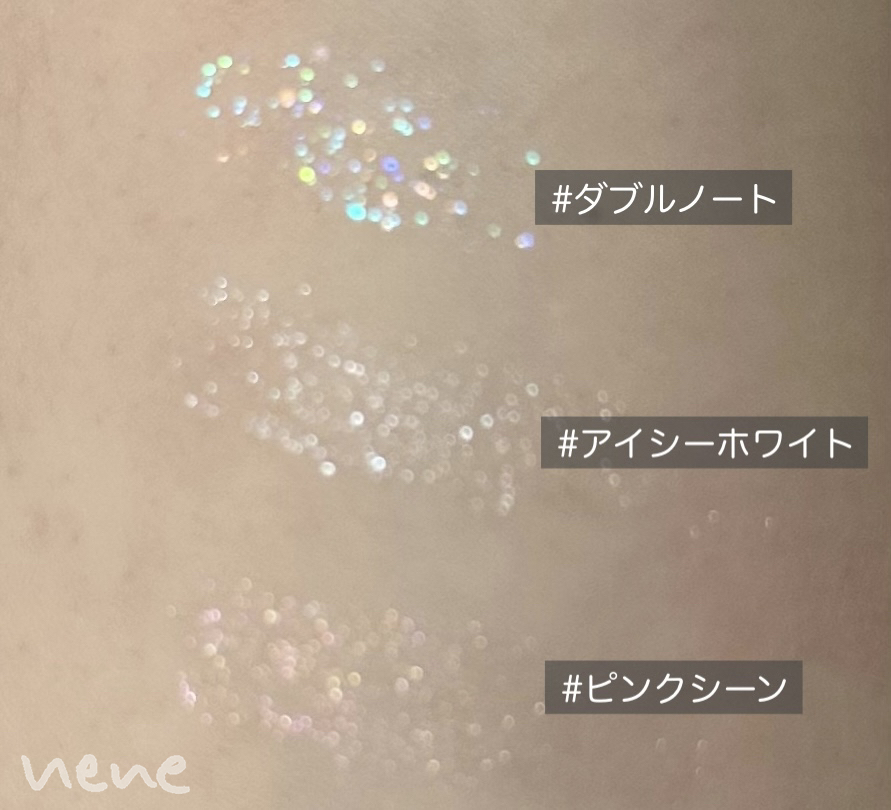 ダブルノートはざくざくの大粒ラメと細かいラメが混ざった、存在感のあるグリッター。