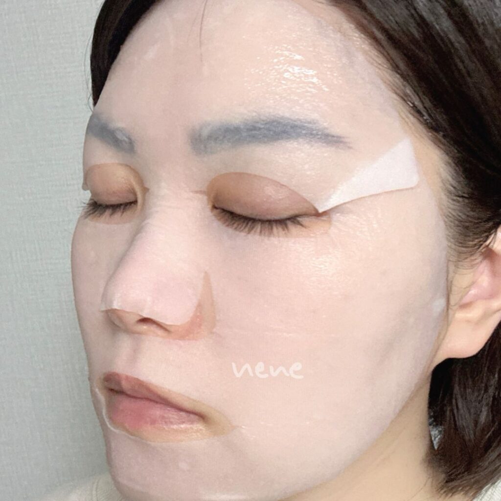 顔にのせるとぴたっと密着します。このまま15〜20分のせておくのが、公式の使い方。