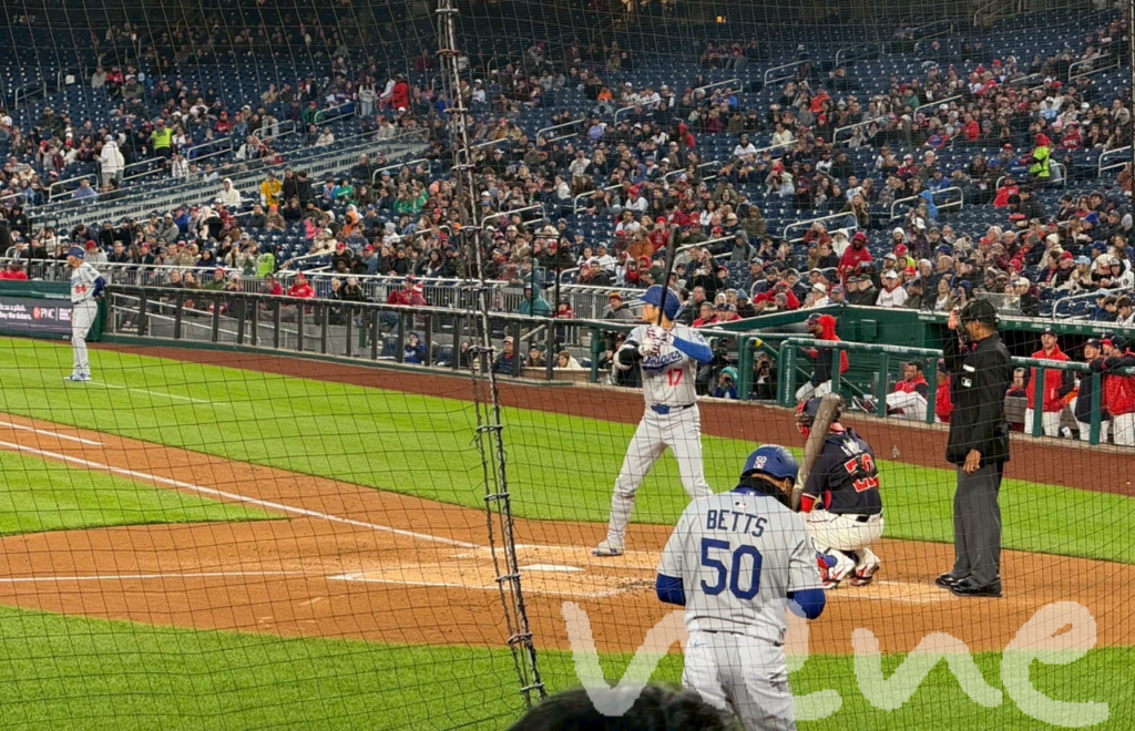 第二打席、ナショナルズが2点リードの場面で、鈍い打撃音が聞こえたと思ったら、瞬く間にボールが外野に吸い込まれていきました。このホームランで一気に同点に追いついて、ドジャースファン側はものすごい盛り上がりに包まれました。