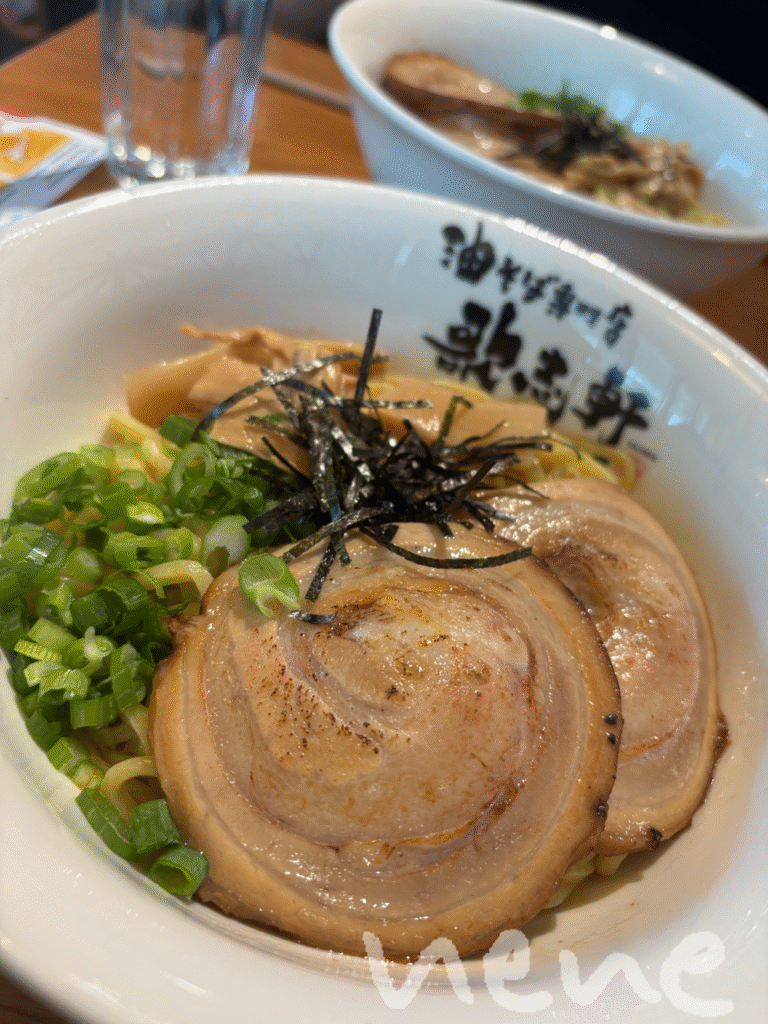 日曜のお昼時を少し遅らせて訪問したのですが、テラス席まで全て満席でした。たしかに油そばは味がハッキリしている分アメリカ受け良さそうですよね。