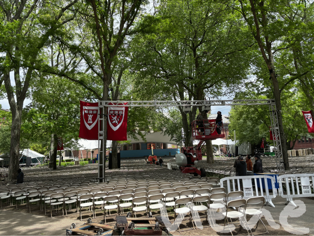 こちらも卒業式前なので、ハーバード・ヤード周辺に椅子やステージが設置されていました。