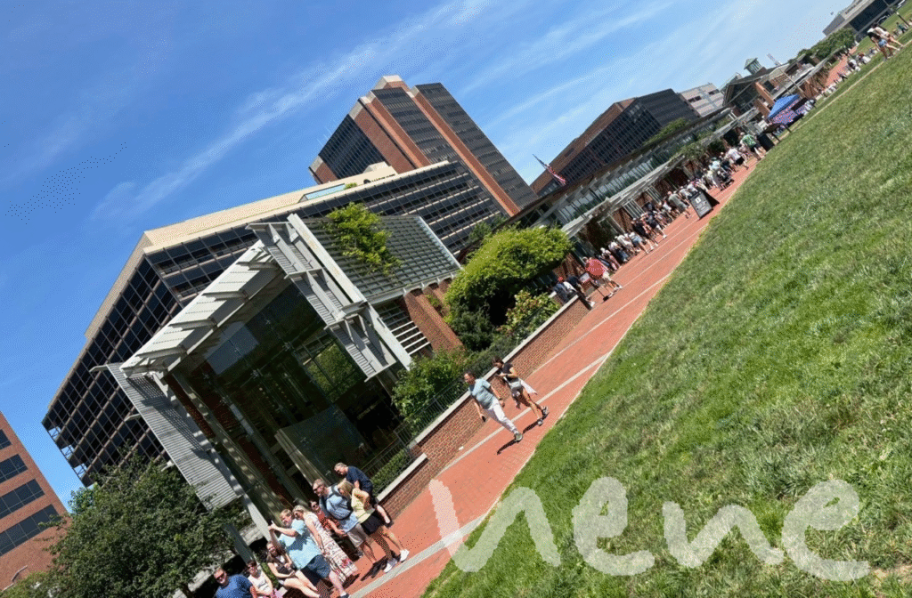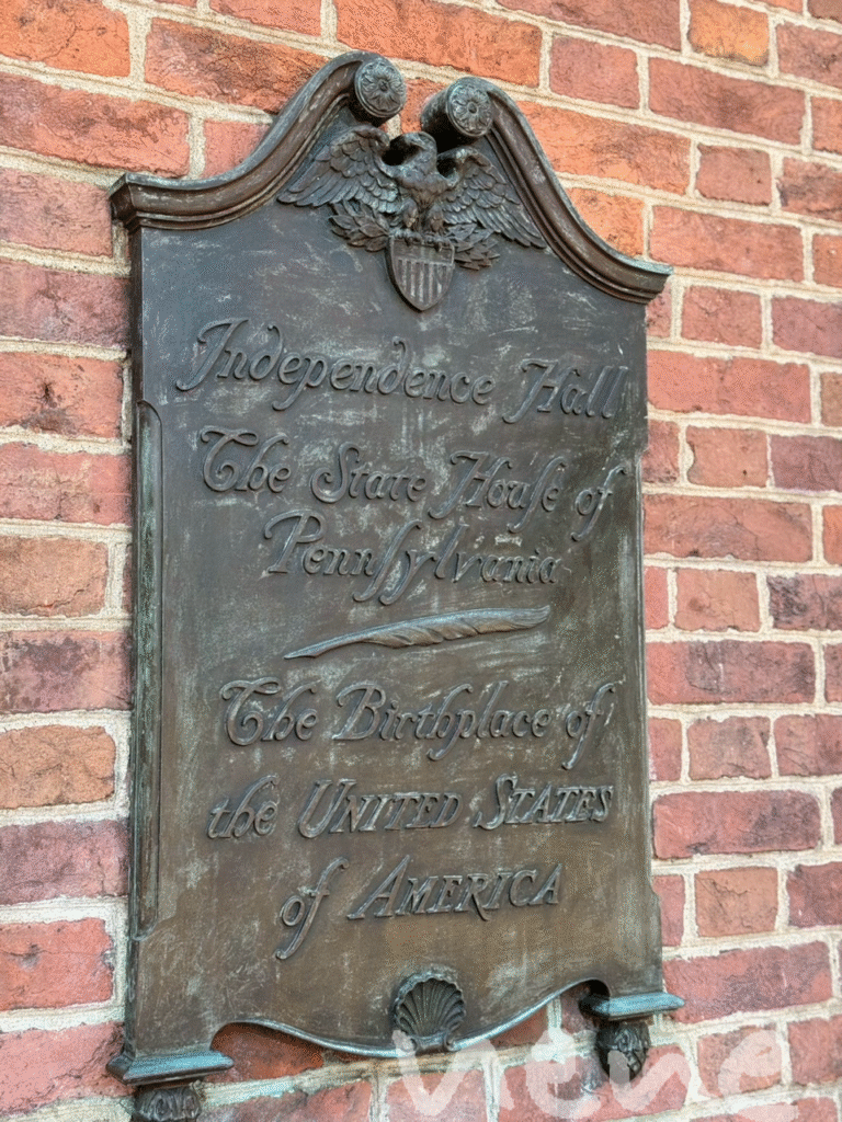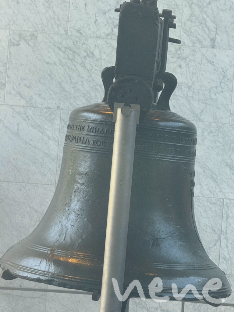 まさにアメリカ独立の象徴となる鐘。ガラス張りの建物の中に飾られており、並べば無料で中に入り鐘を直接みることができます。が、この日33度越えの炎天下、長蛇の列の中30分以上並ぶ体力がなかった私は……ガラス越しにこの写真をズームで収めさせていただきました……。えへ。
