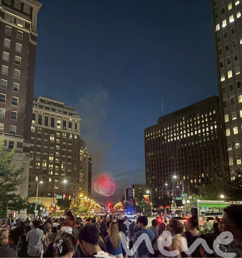 アメリカ国旗のカラーをモチーフにしたものからとにかくド派手なものまで、鮮やかな花火を楽しむことができました。