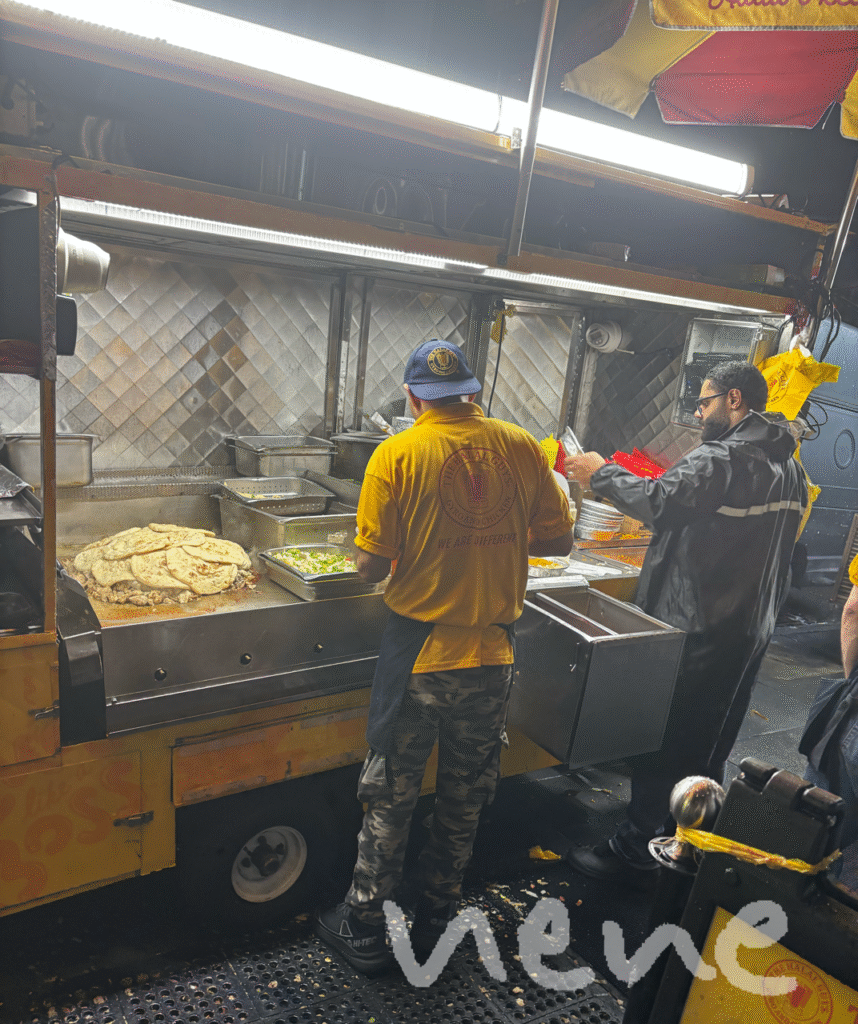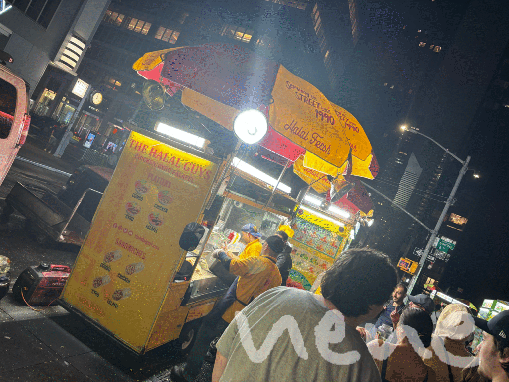 ここはアメリカでは珍しく夜中まで営業している朝人気屋台。ここは深夜にこそ人が集まります。特に23時過ぎのブロードウェイ観覧帰りの人や、飲み終わりの人で長蛇の列ができるんです。我々もまさにWickedの観覧終わりに向かいました!