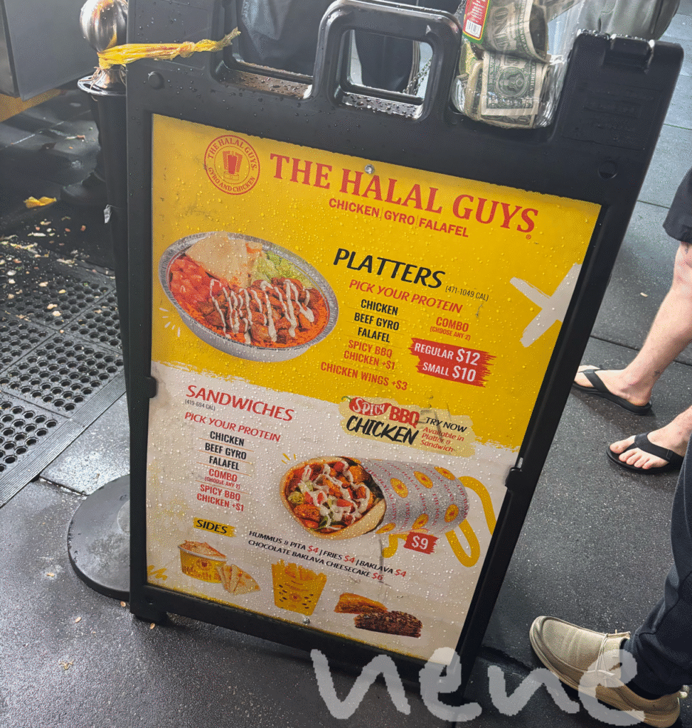 30分ほど並んでお持ち帰りで部屋に帰ります。待ってる間後ろのカップルに話しかけられて、「ここの屋台飯が美味しいから食べてみろって友達におすすめされてきたんだ〜。自分たちは南部からNYに遊びにきたんだよ!」などとお話しして和気藹々と過ごしていました。アメリカ国内でも友人たちの間で評判が伝わっているなんてますます期待大ですよね。