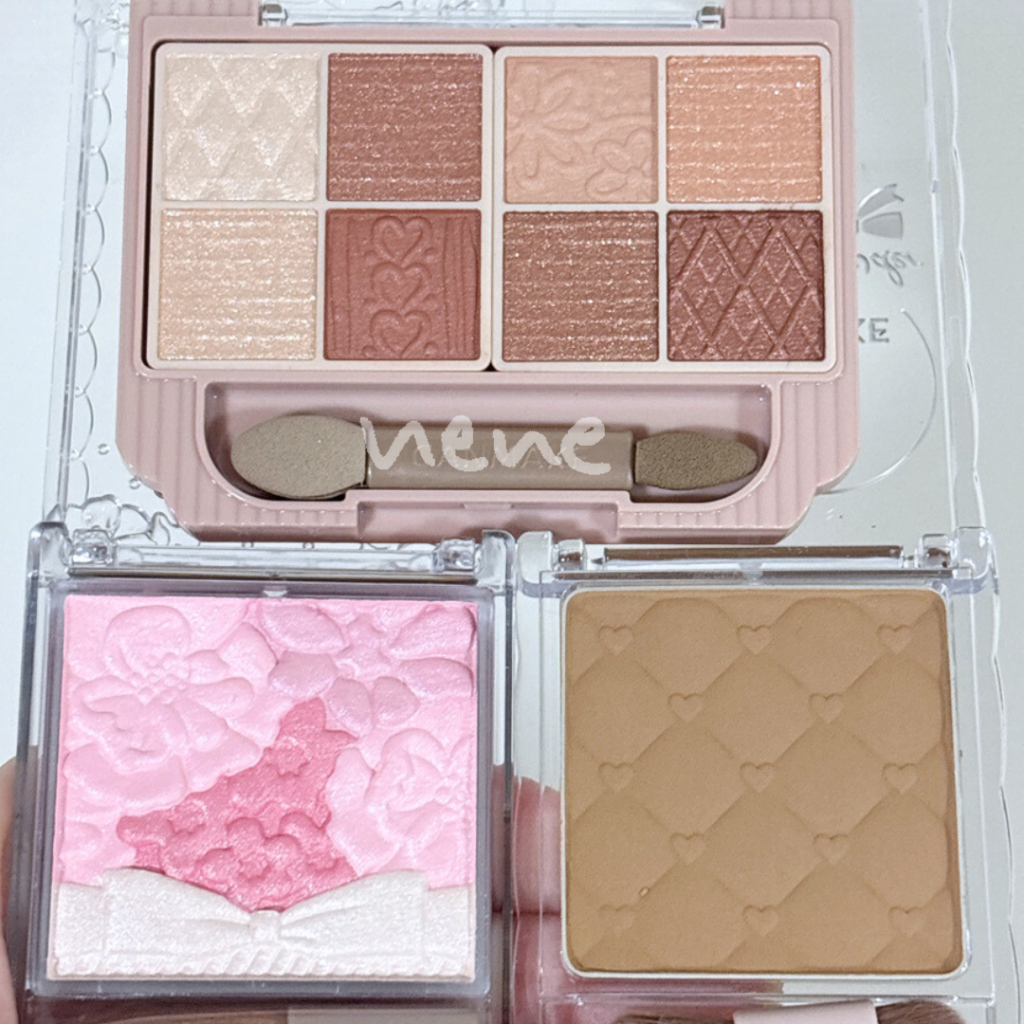 ハート×キルティングは、ほかのシェーディングパウダーでは見られないし、パレットのアイシャドウは一つひとつ絵柄が細かく設定されていたり。チークだってこれ、花束のように豪華じゃないですか……。