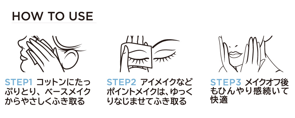 肌にやさしく、擦らずにサッとふき取るだけでメイクをオフし、みずみずしい素肌に整えます。