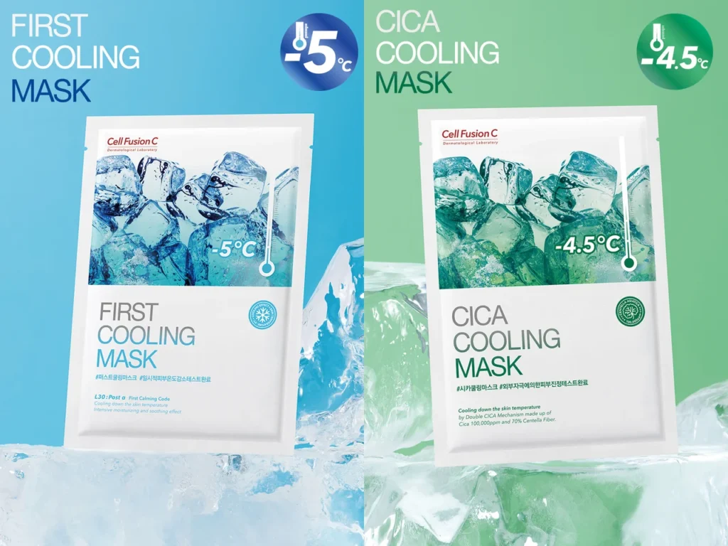 CICA成分を贅沢配合したグリーンの『シカ クーリングマスク』のほか、水分たっぷりブルーの『ファースト クーリングマスク』も人気です。