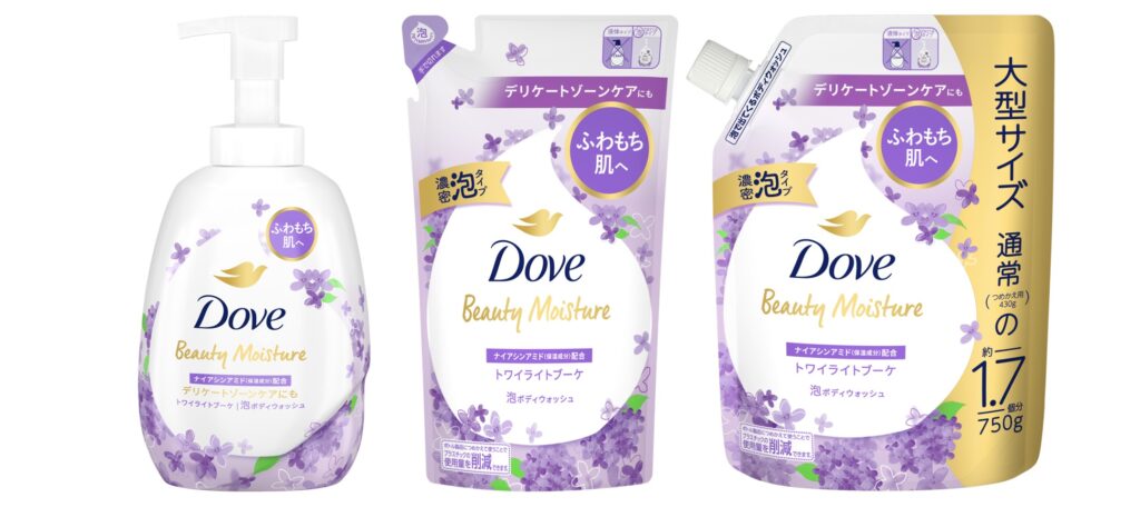 今回の「トワイライトブーケ」の登場で、ダヴの「ビューティーモイスチャー 泡ボディウォッシュ」シリーズはさらに充実のラインナップに。