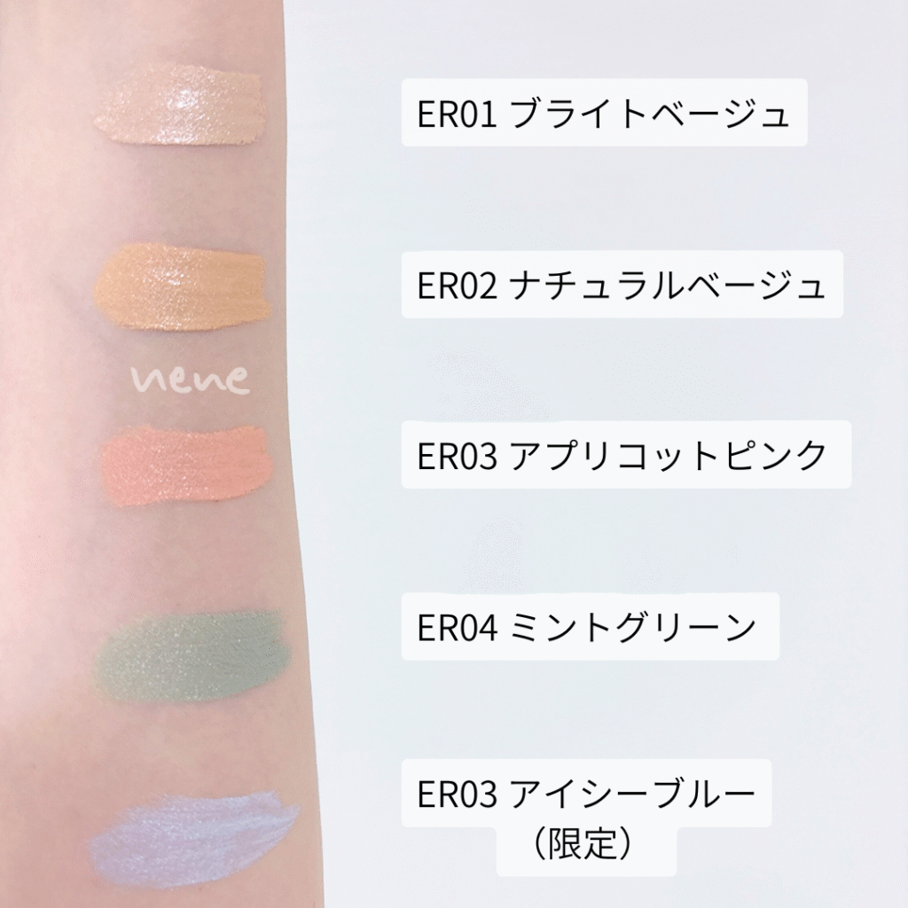 唯一の限定色、ER05 アイシーブルー。くすみを飛ばして透明感をアップしてくれ、ベースメイクのアクセントにもなりそう。