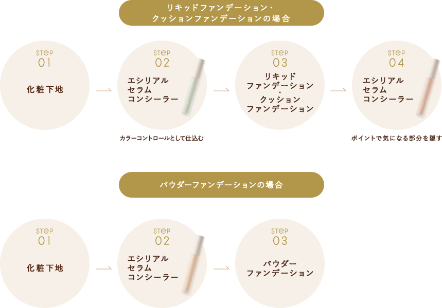 商品名のエシリアルは「空気のように軽い」「信じられないほど美しい」という意味を持ち、肌に乗せたときの軽さと自信を与えてくれるような前向きさを表現しています。コンシーラーを使うときは、自分の肌悩みと向き合うタイミング。マイナスな気持ちになりがちな自分を肯定し、自信に変えてくれるコンシーラーです。