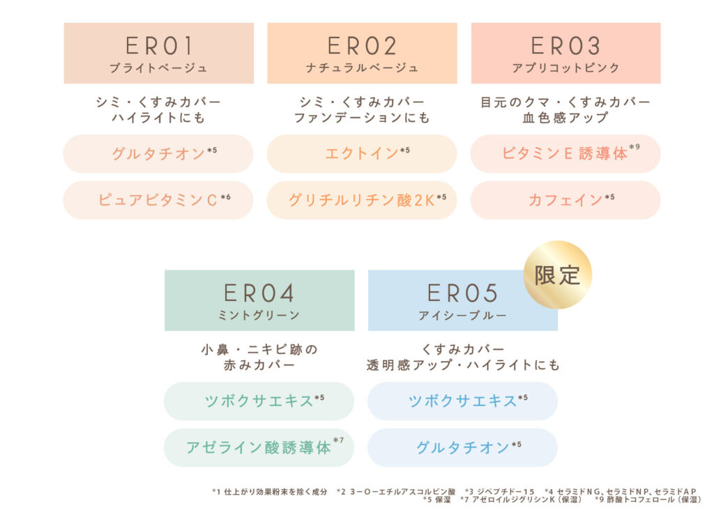 カラー展開: ER01〜ER04・ER05(限定)の全5色