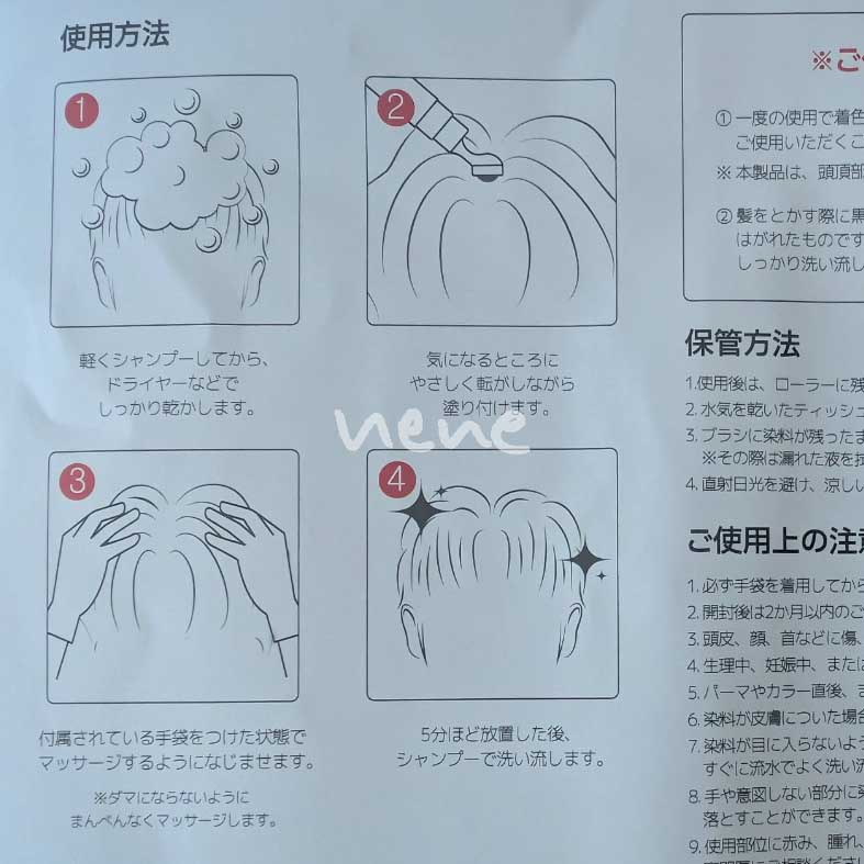 説明書を読むに、頭皮に油がついているとうまく染まらないらしく、シャンプーで皮脂をしっかり取り除いて、乾いた状態で塗布するべきとのことでしたので、シャンプーとドライのみ終わらせておきました。