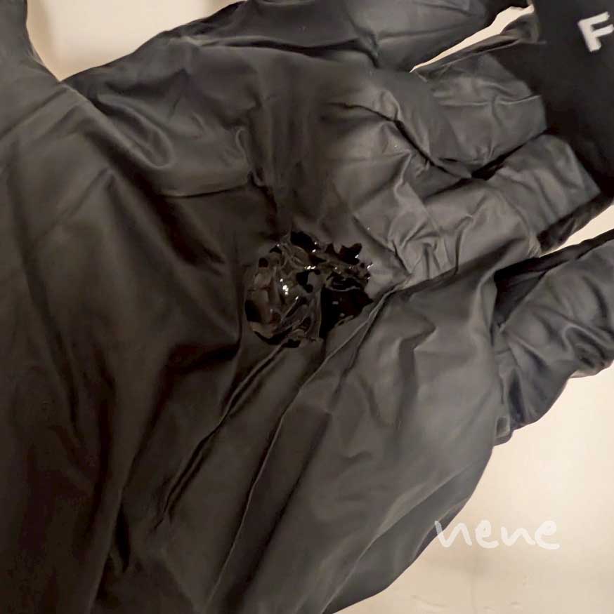 ではでは、おまけでついていた手袋を装着して、と。(なんだこの手袋、シワシワで頼りないぞ〜)
