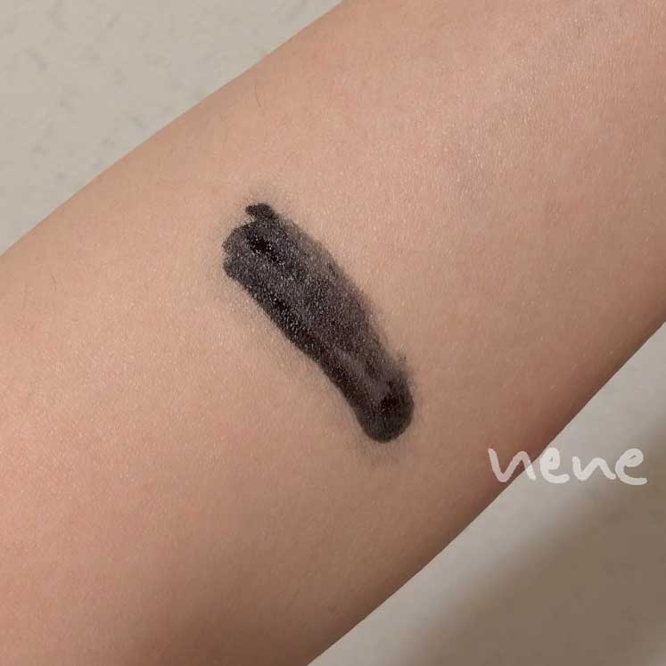 腕に軽く塗ると、こんな感じで染まります。真っ黒で、油性マッキーみたいですね。