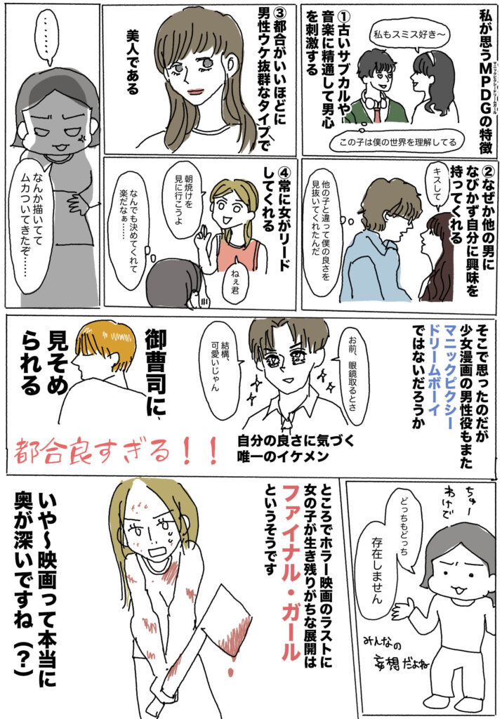 でも現実は映画のようではなくて、私は美人でもなければ、魅力的な会話もできない。その後、アプローチも嫌になり疎遠に。マニックピクシードリームガールは、映画の中だけのものだなと感じた出来事でした。