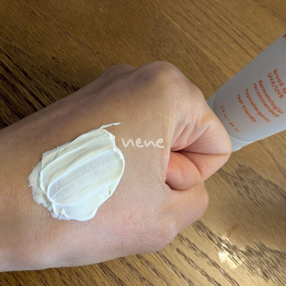 日光に当たる15分前にたっぷりと塗り、80分間以上水泳をした、または汗をかいた後やタオルで拭いた直後は塗り直し必須。他にも少なくとも2時間ごとに塗り直し推奨とのこと。