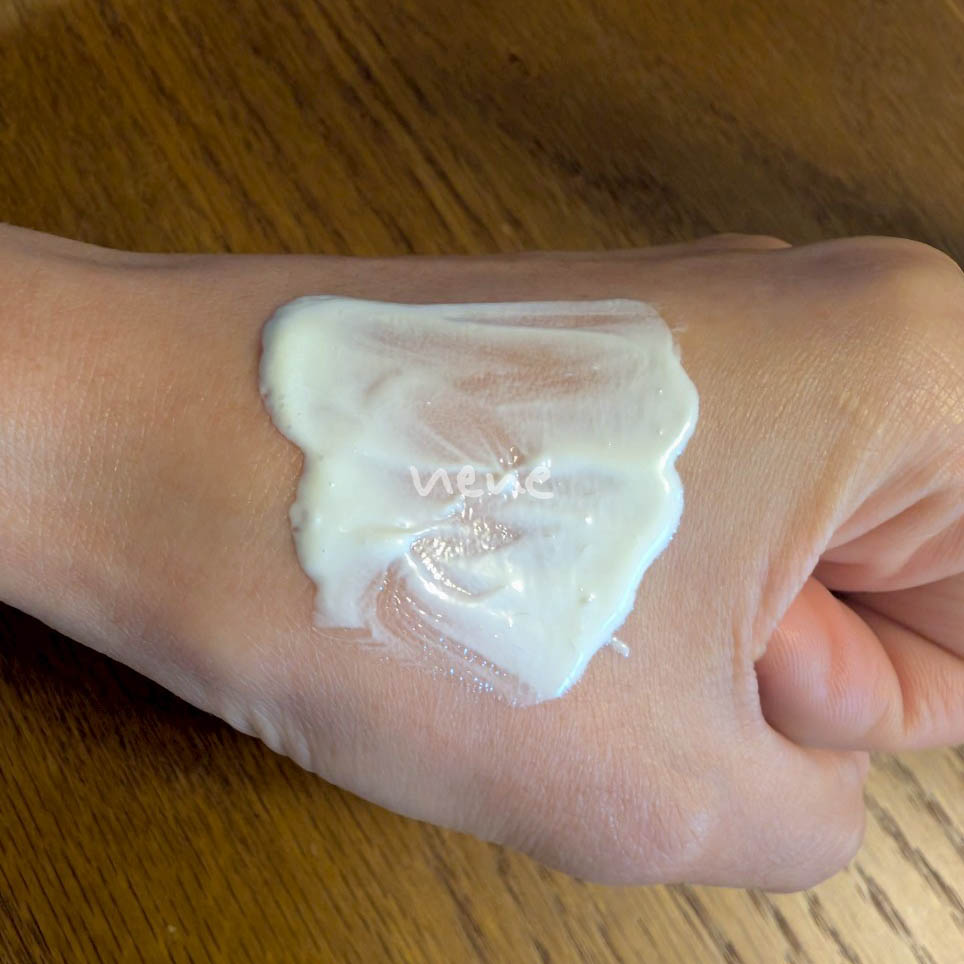 テクスチャは白くて伸びが良く、潤いがギュッと詰まっているのを感じるなめらかさです。