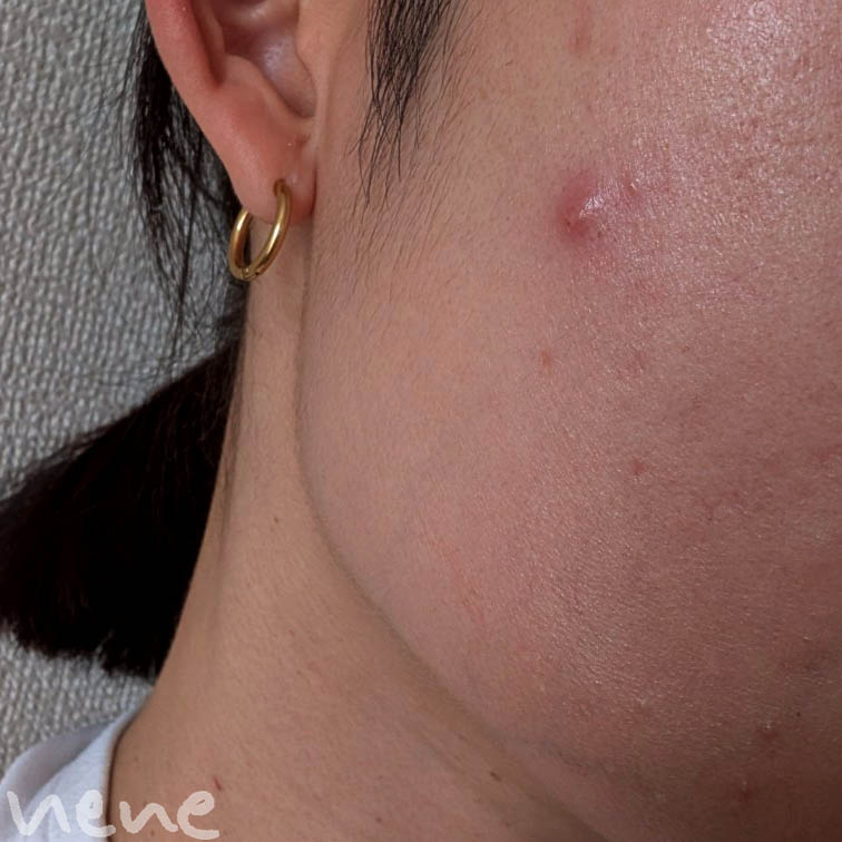 まず、開始の肌はこんな感じ。なぜかいつもひどいニキビが頻発するのに、開始の時だけ落ち着いていました。