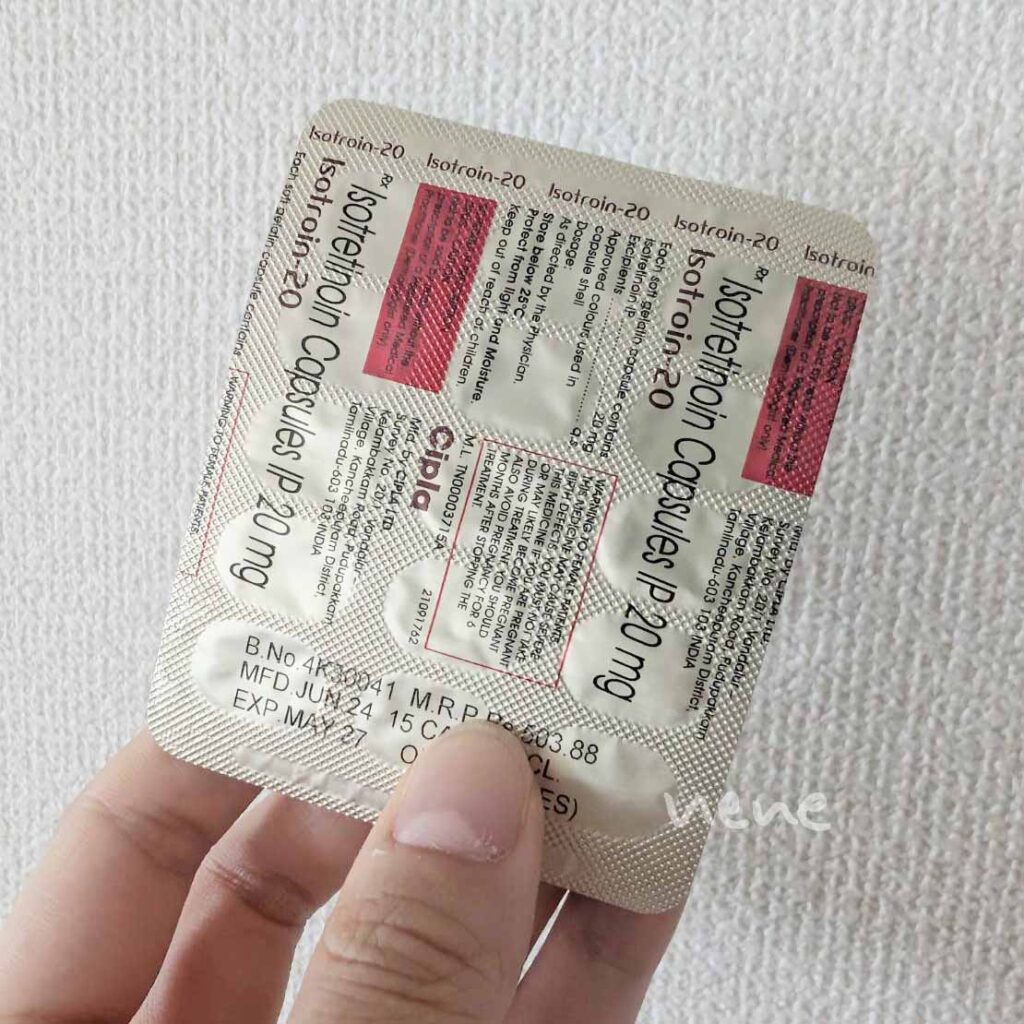 私が内服しているシートはIsotroin(イソトロイン)(インドのCipla社)で、インドは製薬会社も多く