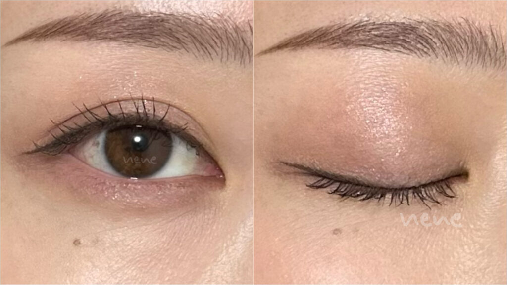 黒のアイライナーを使うことも考えたのですが、筆者の場合アイラインを黒にするとなぜか目が小さく見えるので、ここでも普段通りのブラウンを使用してみました。
