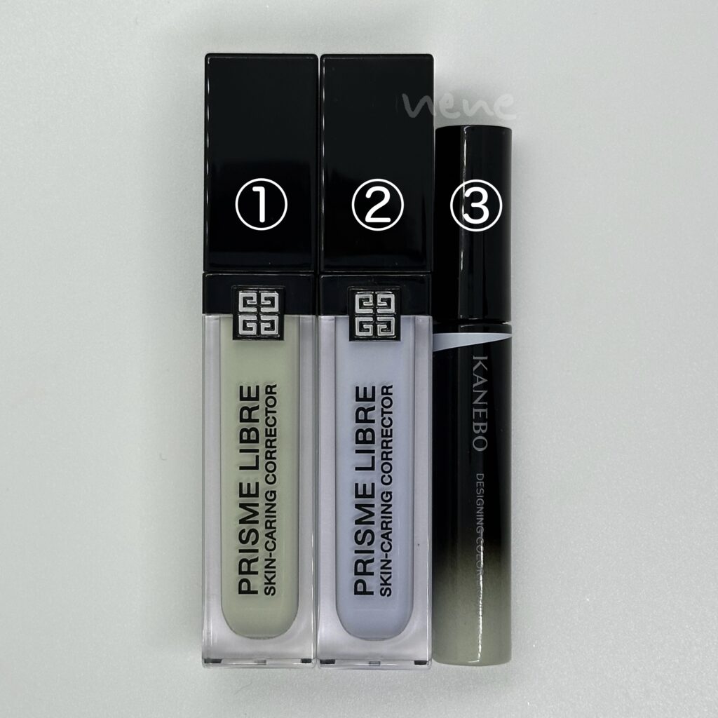 グリーンはカバー力や塗る範囲で使い分けてる!広範囲にはGIVENCHY、狭い範囲や赤みの強い部分にはKANEBOという感じ