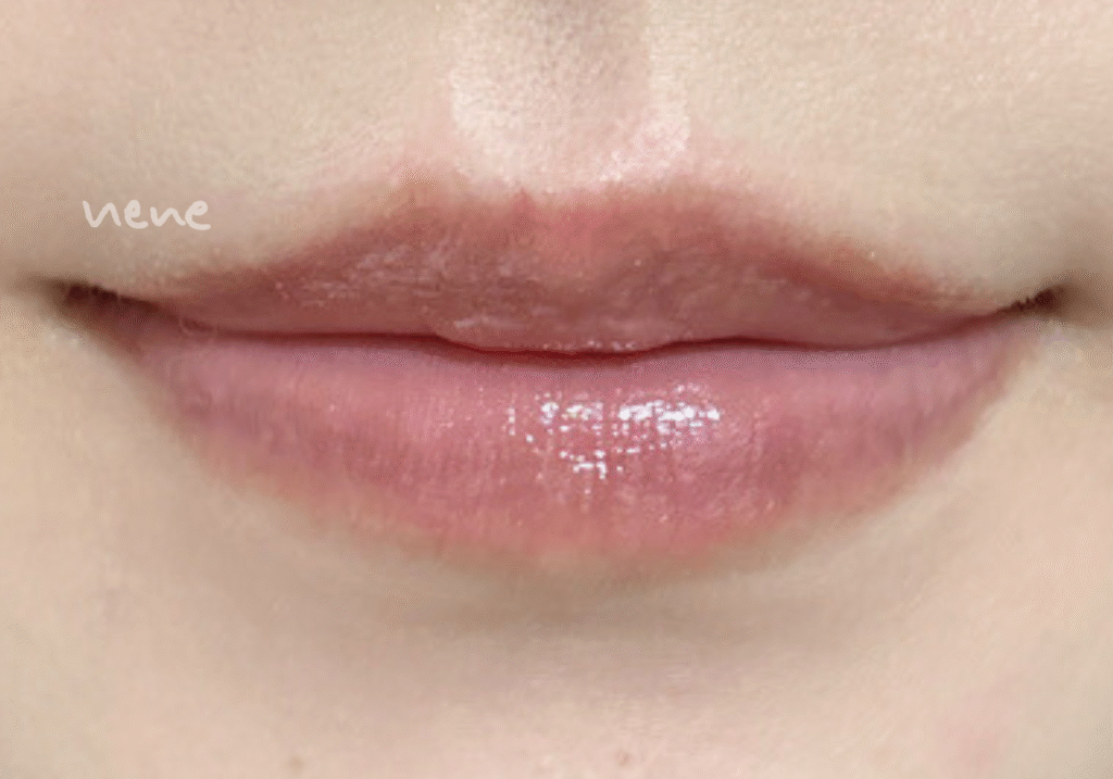 微細パールが絶妙で、ベタベタに見えない上品なツヤ感を演出してくれます。光の当たり方によってふっくらと立体的に見えるので、薄い唇の筆者でもボリューミーな印象に見せてくれるのがうれしい!
