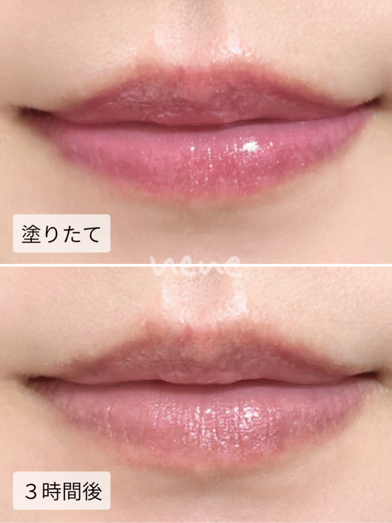 ティント処方ではないので、色もちは普通。飲み物程度ならOKですが、食事のあとは塗り直し必須かなと思いました。