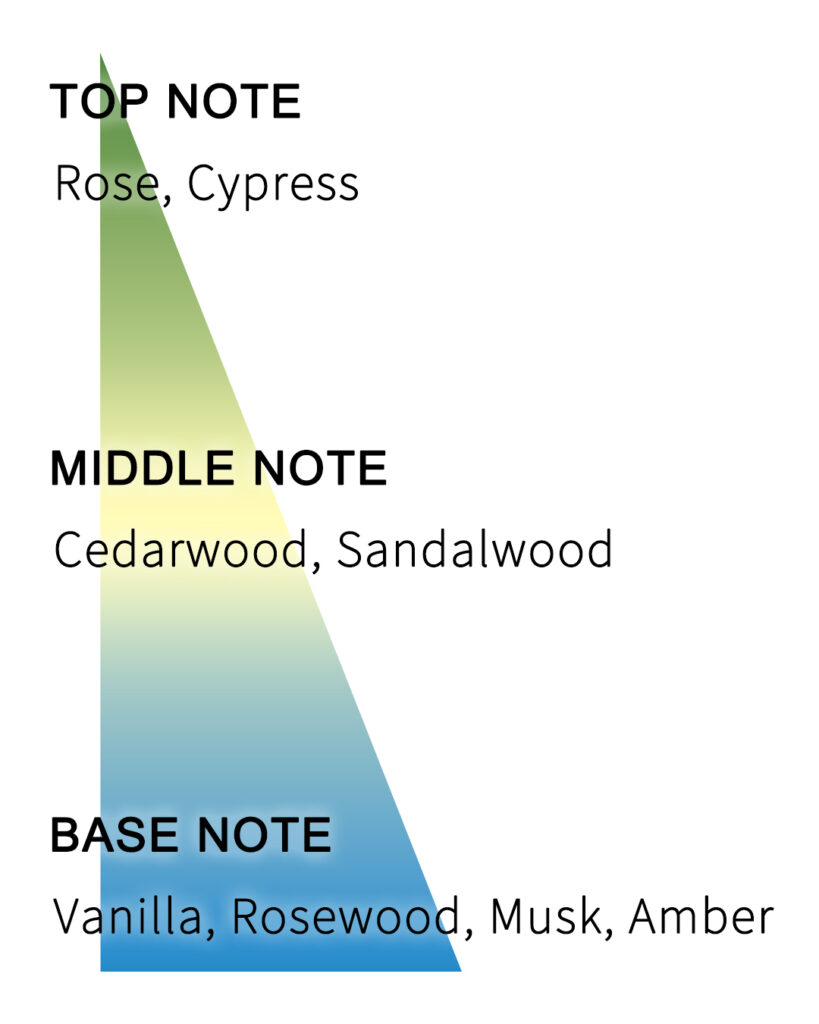 ベースノート:バニラ、ローズウッド、ムスク、アンバー