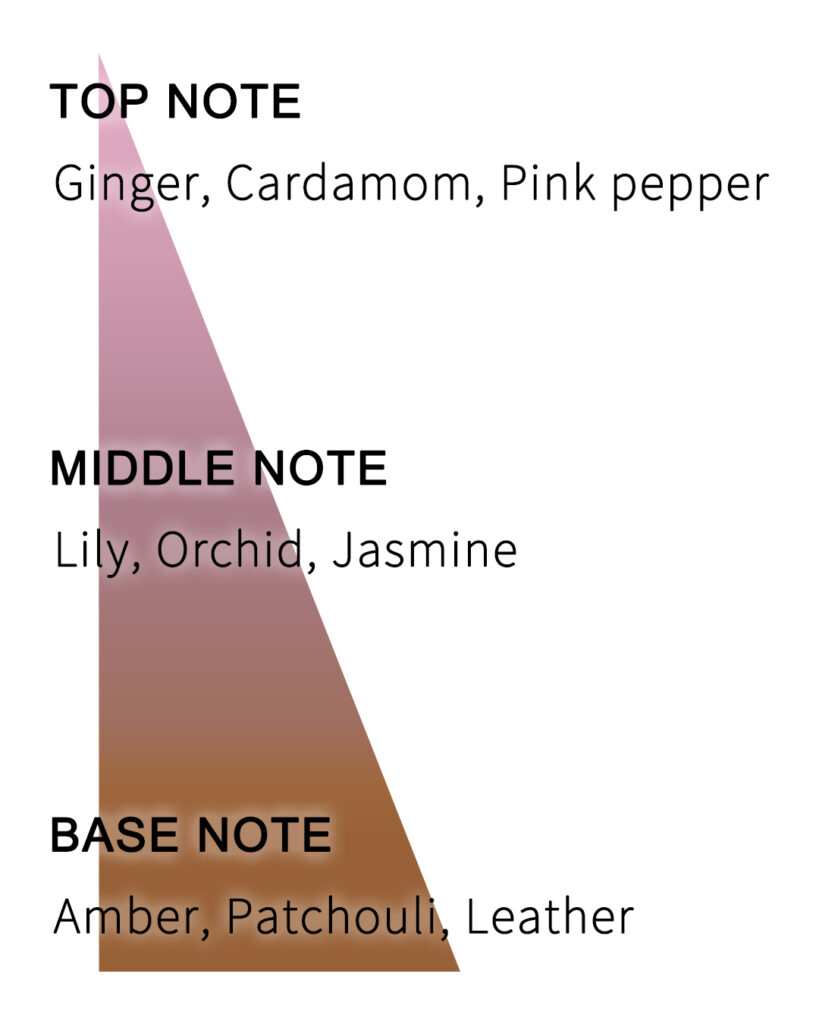 トップノート:ジンジャー、カルダモン、ピンクペッパー