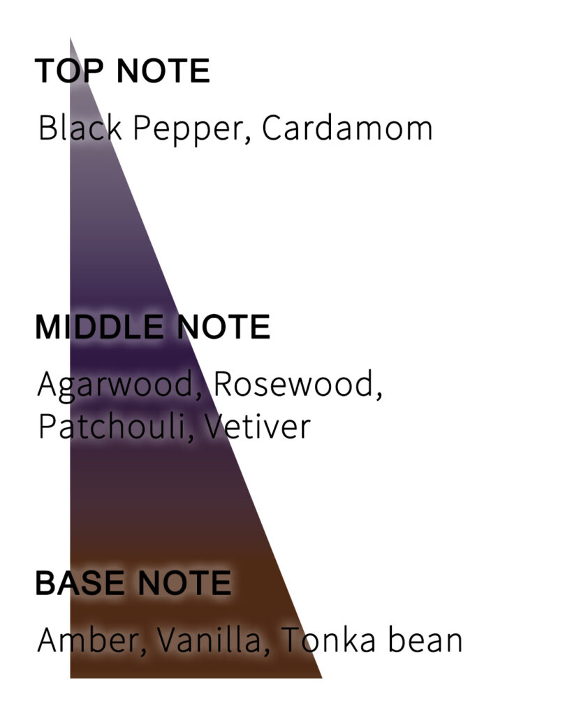 ミドルノート:アガーウッド、ローズウッド、パチョリ、ベチバー