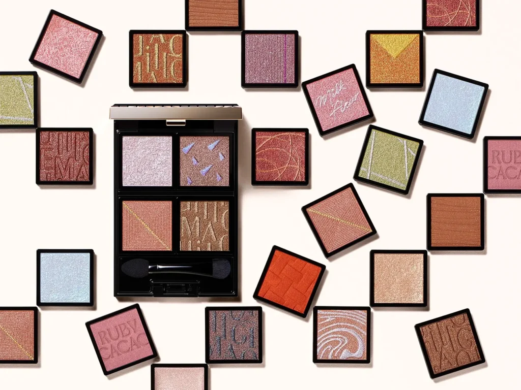 たとえばピンク・ゴールド・シルバーを混合したりして、角度によって異なるニュアンスを生み出し、血色感や透明感を引き立てます。