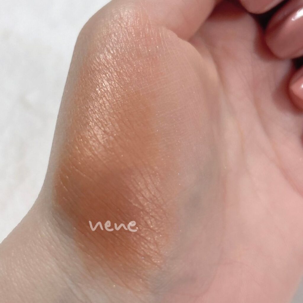 オレンジみの強いコッパーブラウンです。繊細パールがツヤめき、肌馴染みは抜群。