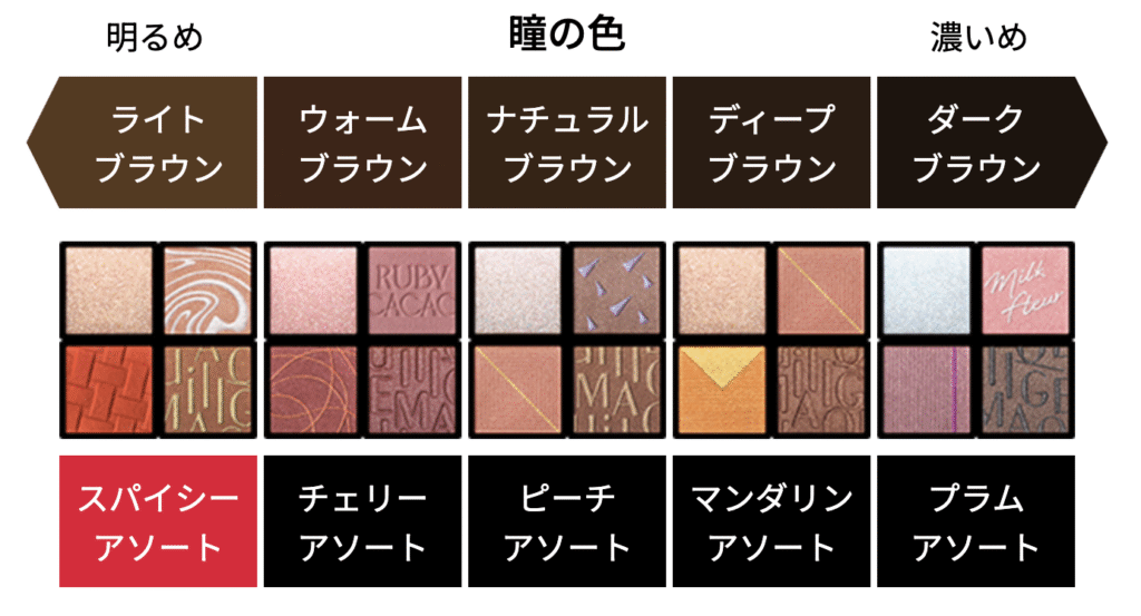 瞳の色が薄めな筆者は、『01スパイシーアソート』か『02チェリーアソート』が良いらしいのですが…