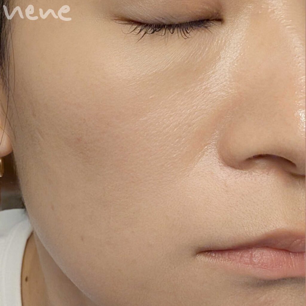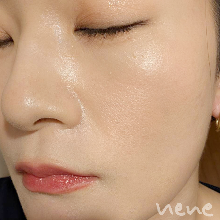 室内光の様子↓頬はハイライトを入れていますが、この毛穴の消滅具合&肌の発光感を見てほしい。