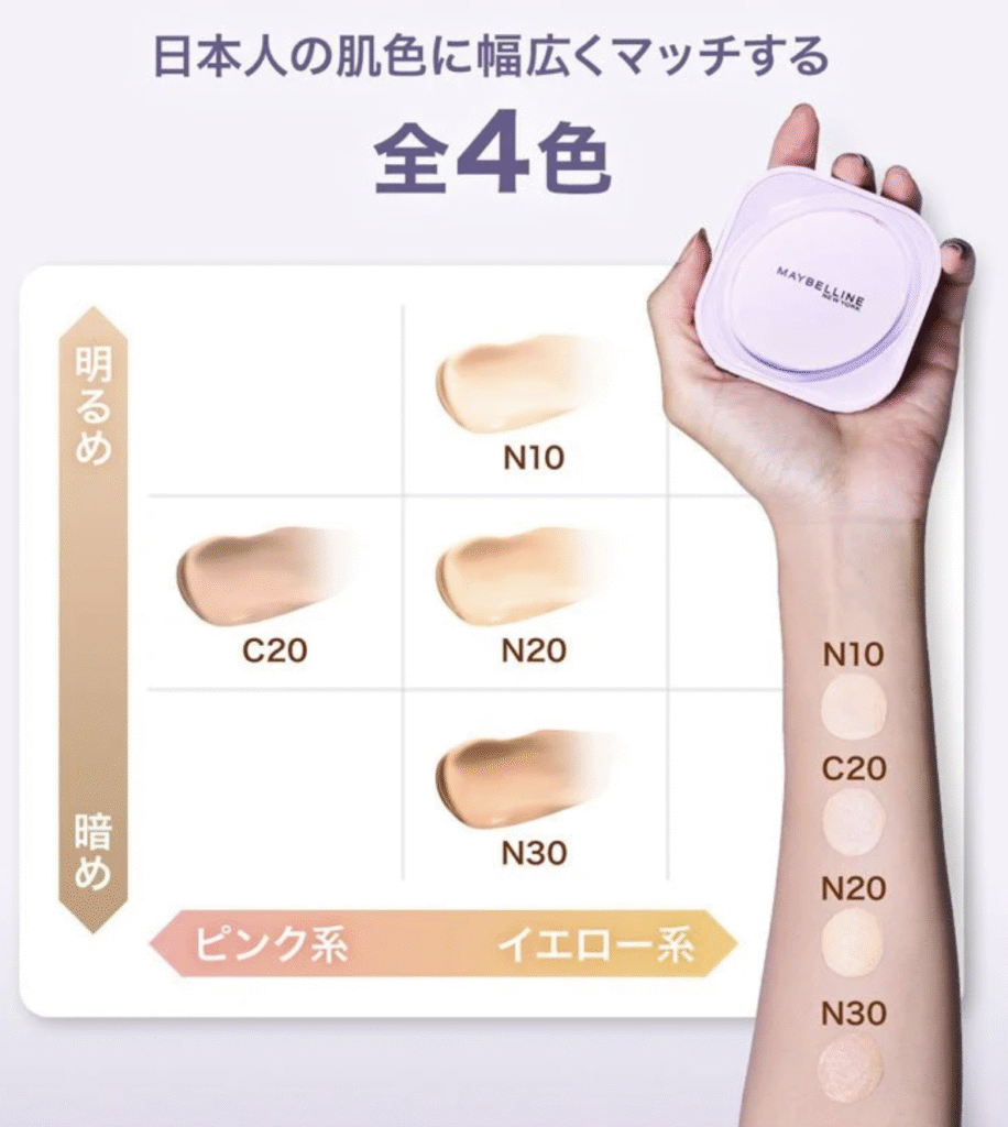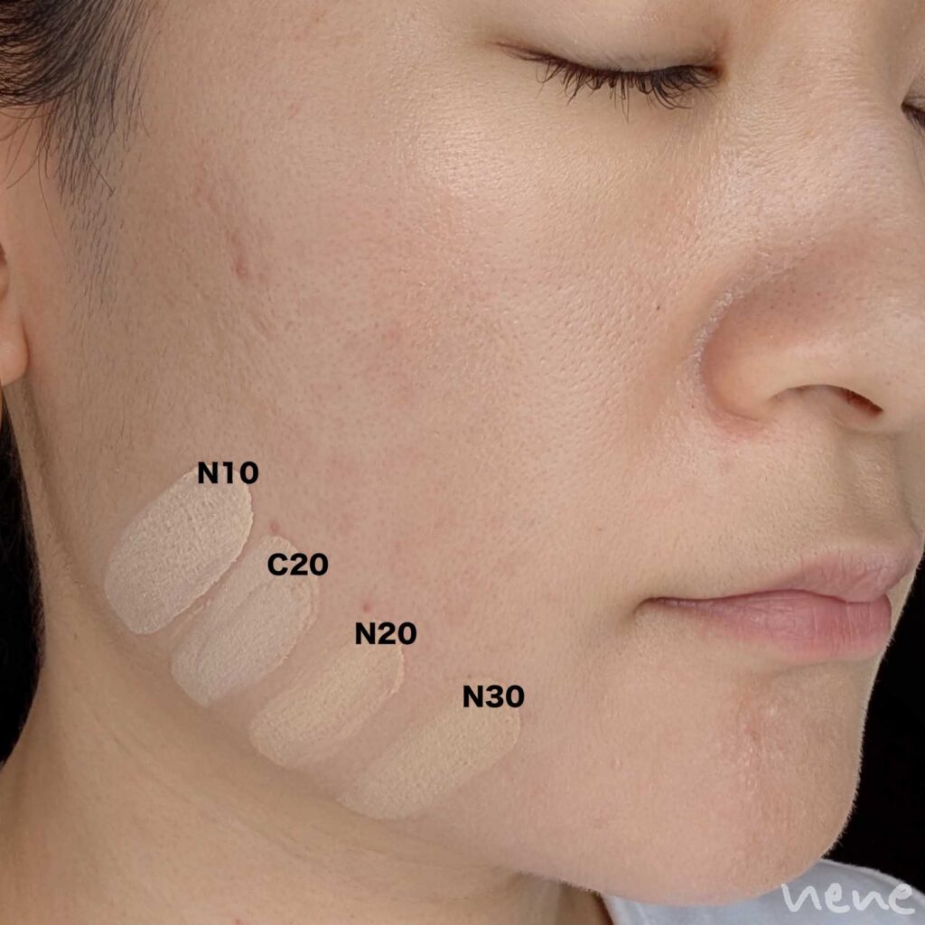 Cカラーはややピンクみのある肌に、Nカラーはややイエロー寄りの肌にオススメ。