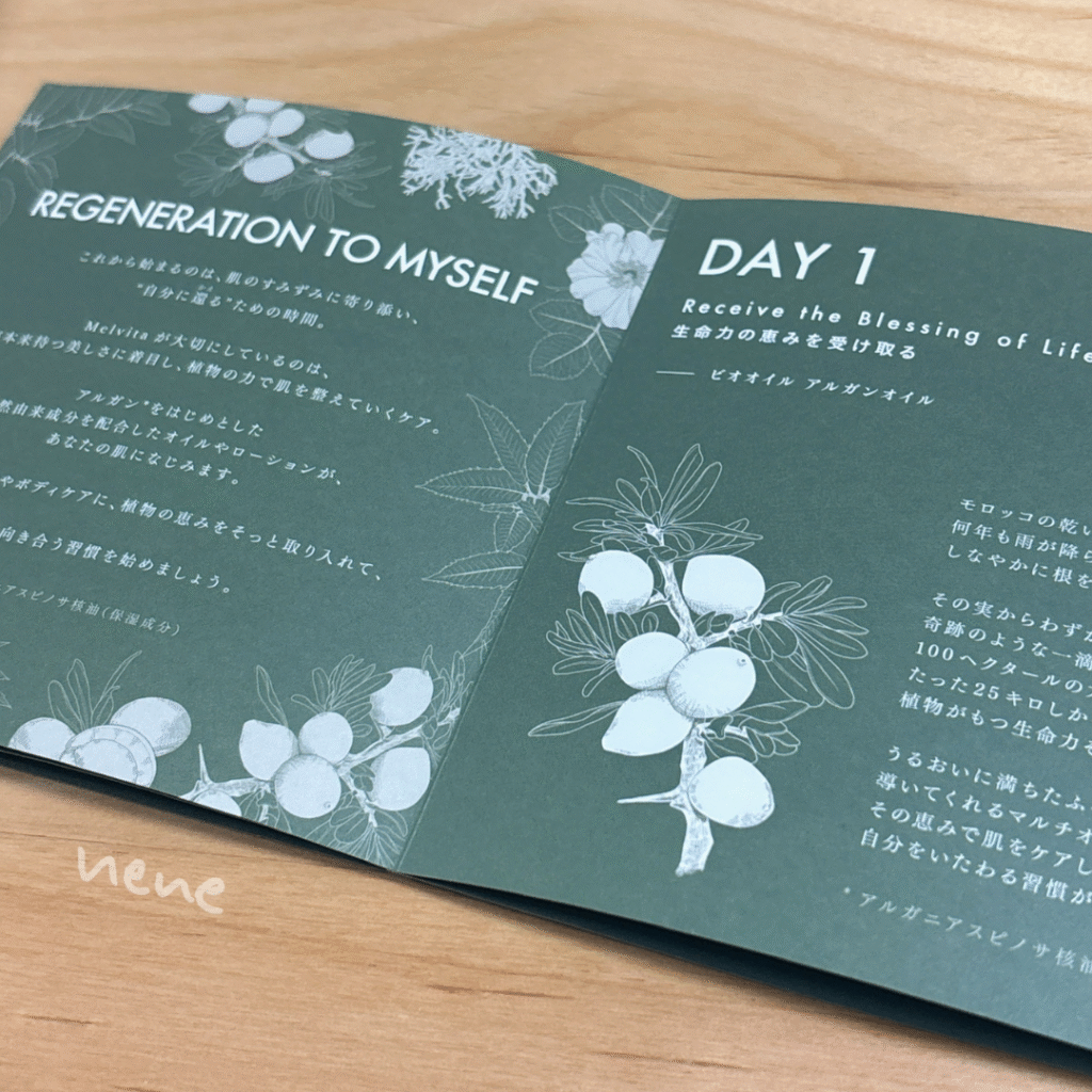 5日目は、メルヴィータが40年以上研究してきた発酵アルガン※を配合したエイジングケアクリーム。