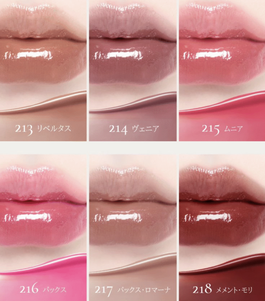 ベージュやコーラル、ローズピンク系と、ふだん使いしやすいカラーがたくさんなのがうれしいところです。いつものリップに重ねてもおすすめ。