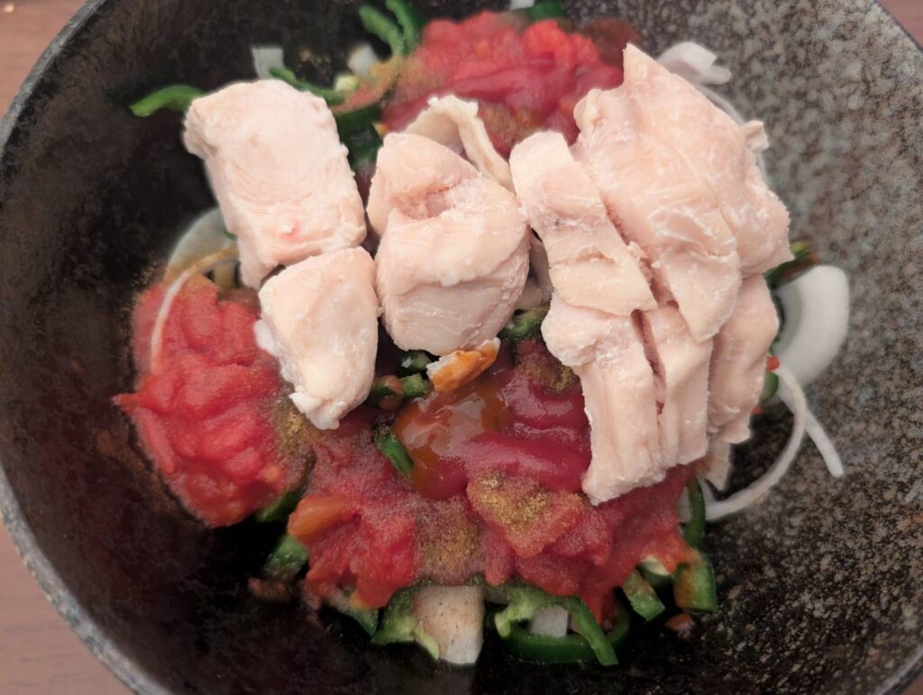 なお、サラダチキンは脂質を排除すべく鶏皮を取る方が多いみたいですが、私は鶏皮の美味しさをあえて残しています。おいしくないとやってられないので。ちょっとくらいええねん。