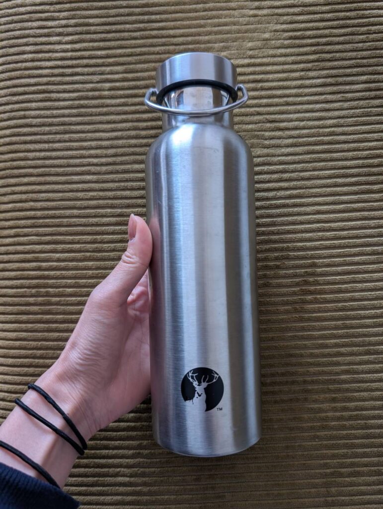 こちらの600mlの水筒ボトルを、仕事中2本は必ず飲む、という目標を設定。