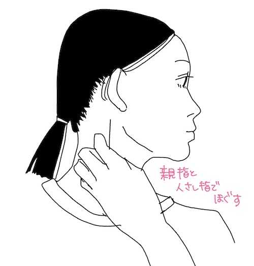 顔まわりは強く揉むとたるみに繋がりかねないので、首元の胸鎖乳突筋に重点を置いて、顔のコロコロなどは控えています。