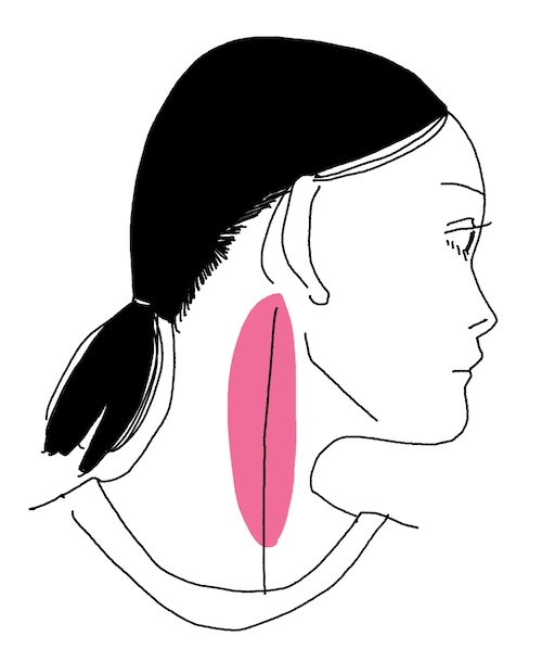胸鎖乳突筋とは、首の側面にある大きな筋肉で、顔を動かしたり首を回したりする時に使われる重要な筋肉です。ここが凝っていることで顔がたるみ、フェイスラインがぼやけてしまうので、しっかりケアするのが大切なのだとか。
