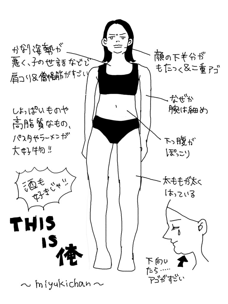 ・元々は痩せ型だが産後と在宅ワークの影響からプラス5キロ