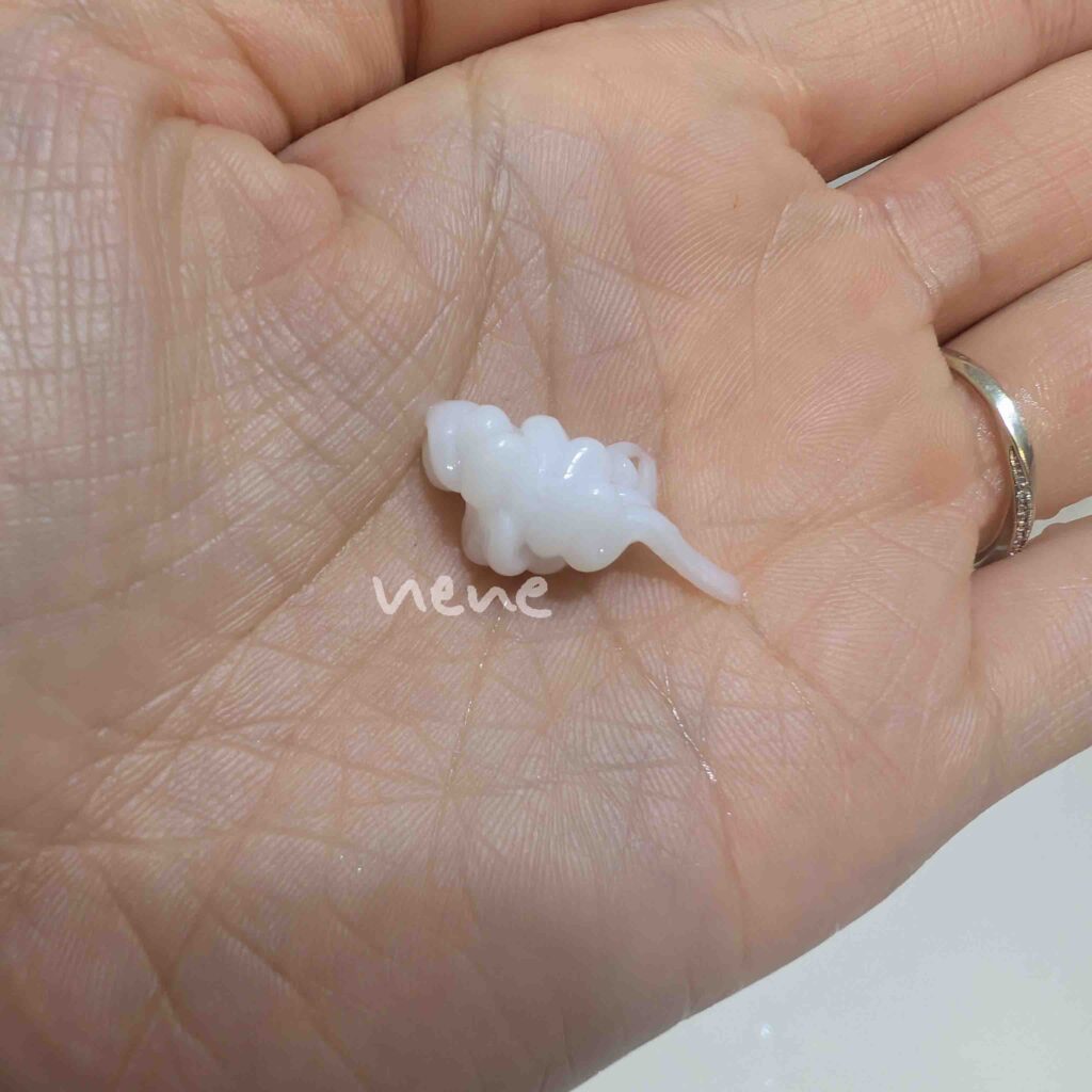 筆者はミディアムヘアなので3プッシュ使ってこれくらいの量になります。