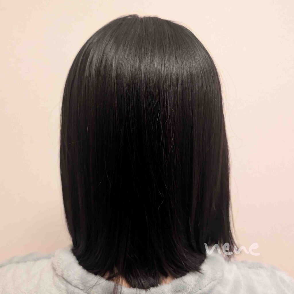 すごい。コーティングされた感じではなく、内側からしっかりと潤い、整ったような髪のツヤ。